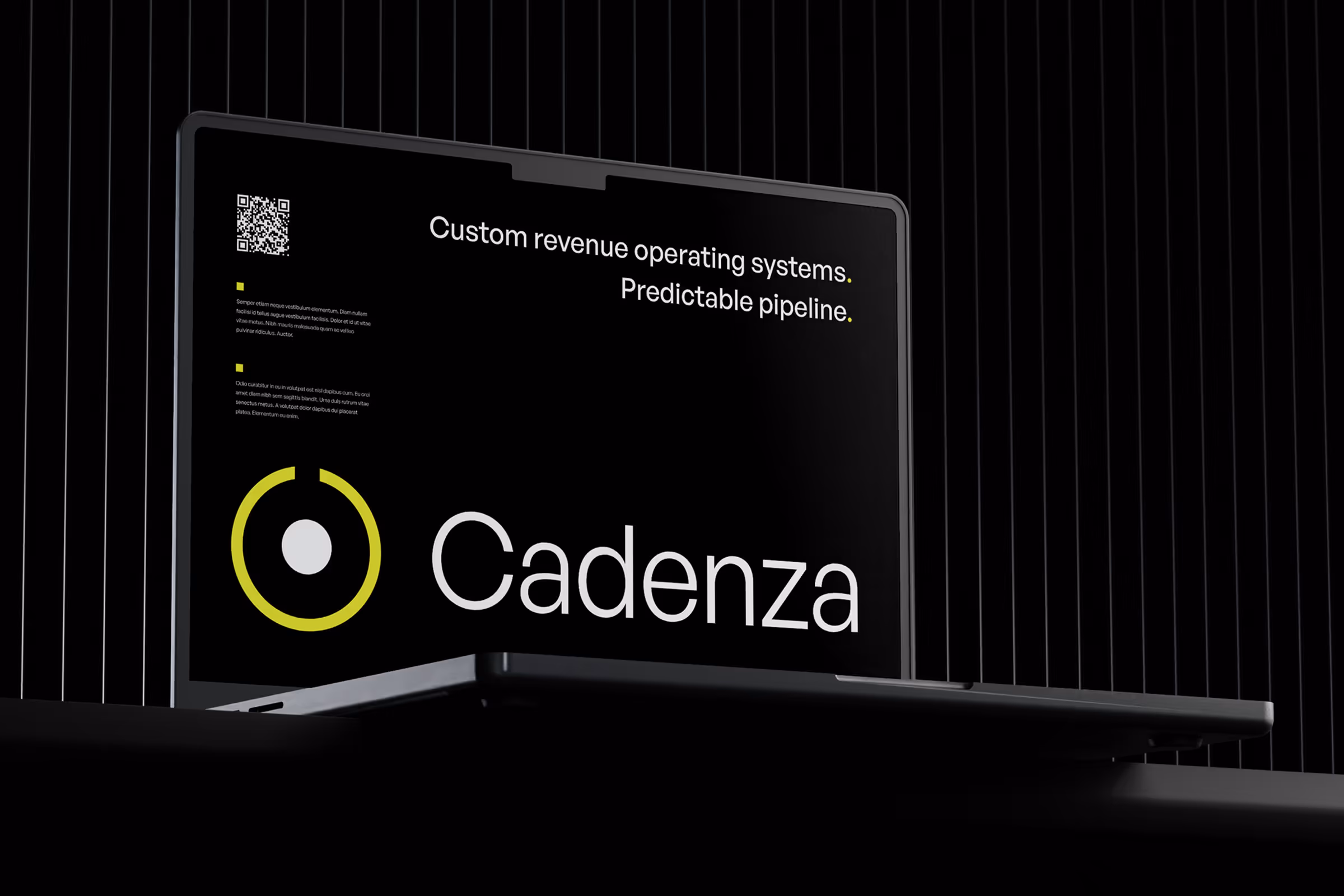 The identity centres on a custom mark combining a dial, target and the letter C, referencing calibration and precision over literal musical imagery, set within a restrained black, white and yellow system.